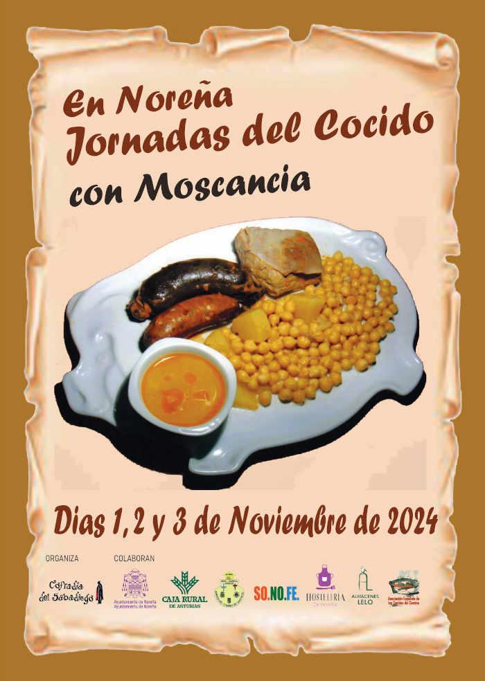 Noreña acoge sus tradicionales Jornadas del Cocido con Moscancia, unas jornadas gastronómicas que organiza la Orden del Sabadiego y respaldadas por el Ayuntamiento, la Junta de Hostelería y varios patrocinadores como Caja Rural y Almacenes Lelo.