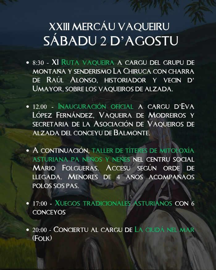 En el marco de la fiesta además del propio mercado de alimentación se organizarán actividades para todos los visitantes como por ejemplo una ruta vaqueira, música tradicional, pasacalles, actividades infantiles, espectáculos de circo y canciones de chigre.