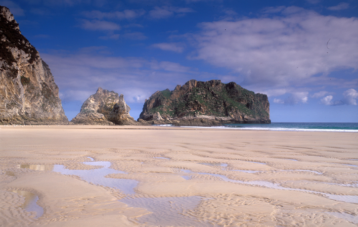 In der Mitte des Sandstrandes befindet sich die kleine Insel El Castrón, ein beliebter Zufluchtsort für Möwen.