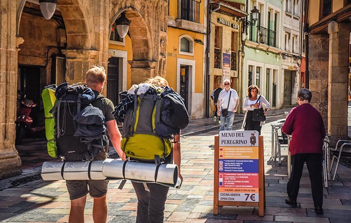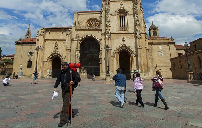 Nach dem Besuch des Herrn in der Kathedrale von San Salvador gehen Sie in Richtung Norden durch Straßen wie El Águila, Gascona (berühmt für seine Apfelweinhäuser), Foncalada (wo sich der vorromanische Brunnen befindet) usw. und spazieren durch die Stadt, ohne sich zu verirren, da in jeder Straße eine Muschel den Weg markiert.