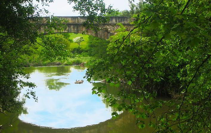 Über die Avenida del Mar und El Pontón de Vaqueros verlässt man die Stadt und biegt links auf eine Landstraße ab, die nach La Estrecha und Cuyences führt. Einen halben Kilometer weiter in Richtung Norden führt ein Weg rechts über La Granxa, Llaviada, La Pedrera und El Puente Cayés über den Fluss Nora.