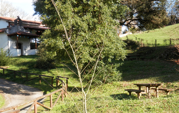 Kleines Erholungsgebiet in der Nähe der romanischen Kirche von Vega de Anzo in Grado.