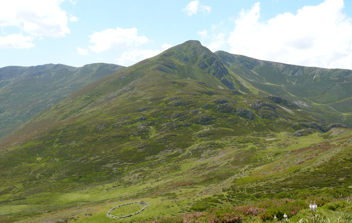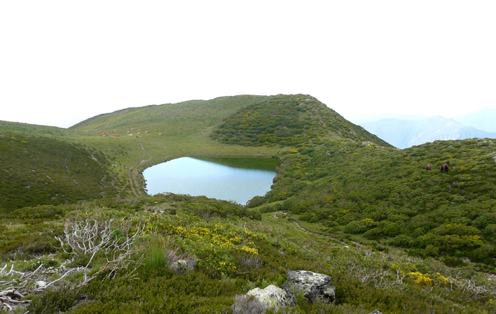 Wenn man weiter in nördlicher Richtung geht, erreicht man Entrecuetos, den Punkt, der die Gipfel von El Cabril und Peña Treisa trennt. Der Gipfel des El Cabril ist nur 600 m entfernt, und von hier aus kann man die galicische und asturische Küste sehen, wobei die Großartigkeit des Pigüeña-Tals mit seinen Dörfern und "brañas", insbesondere La Pornacal, hervorsticht. Auf dem Rückweg kann man die Strecke abkürzen, indem man in Fanarrionda auf den Weg Polvorosa abbiegt, einen Pass, der früher Genestoso mit Villar de Vildas verband und durch einen dichten Birkenwald führt. Es handelt sich um einen kurzen, steilen Abstieg.