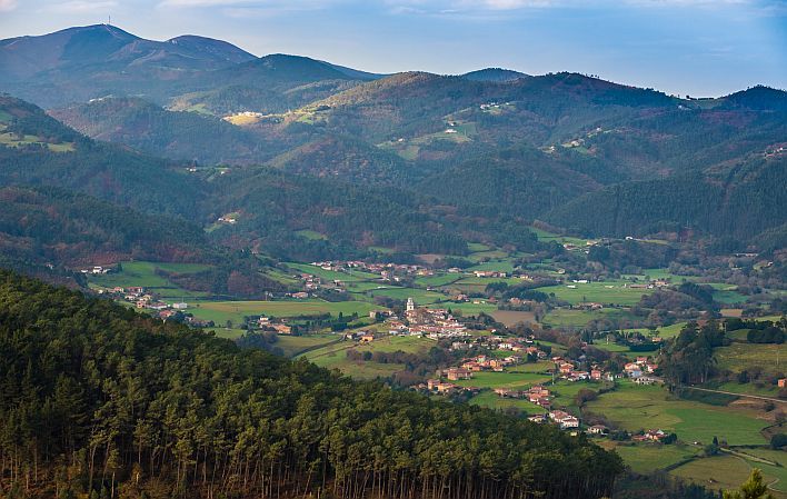 Etwa bei Kilometer 4,4 müssen wir auf den Weg rechts und weiter links abbiegen, der sich mit dem Jakobsweg deckt und durch den oberen Teil des Dorfes Mumayor führt. Nach weiteren 2 Kilometern überqueren wir den Abango-Bach und der Weg führt uns zurück zur Autobahn A-8, die wir bei Kilometer 8 unterqueren.