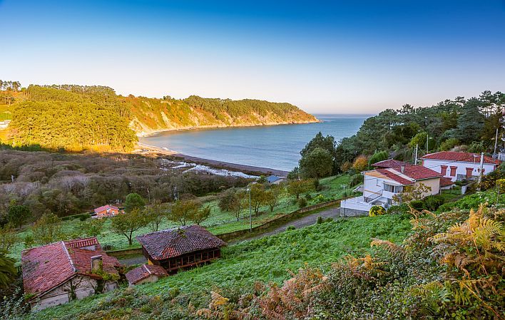 In der letzten Etappe der Route, bei Kilometer 9,2, nehmen wir einen Weg zwischen den Häusern am Strand, die ihn auf der rechten Seite verlassen, und folgen ihm bis zum Dorf Lamuño.