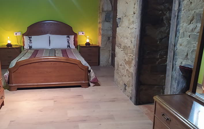 Vivienda vacacional ubicada en una antigua casona indiana. Rehabilitada manteniendo la estructura y la carpintería exterior de madera de castaño y roble, así como las paredes de piedra vista.