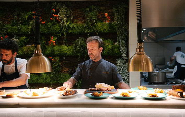 En Nastura, el ocio y la gastronomía convergen, ofreciendo la oportunidad de disfrutar de un vino o una comida informal en nuestras mesas altas con vistas al verdadero espectáculo: la cocina. Alternativamente, puedes acomodarte en nuestro comedor, inspirado en la elegancia de los restaurantes ubicados en los vagones ferroviarios.