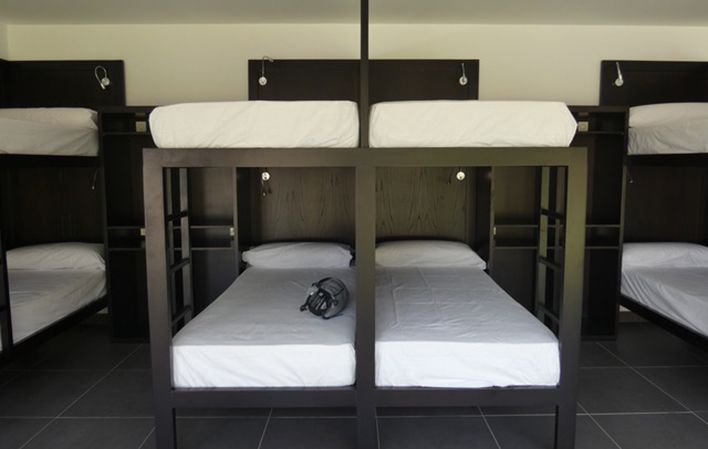 El albergue tiene la forma de una cueva empotrada en la con su frontal totalmente acristalada, y goza de ventilación y luz naturales. La temperatura es perfecta ya que, al estar empotrado en la montaña, se consigue el efecto bodega, ni frio en invierno ni calor en verano, contando con calefacción de biomasa para los días más fríos.