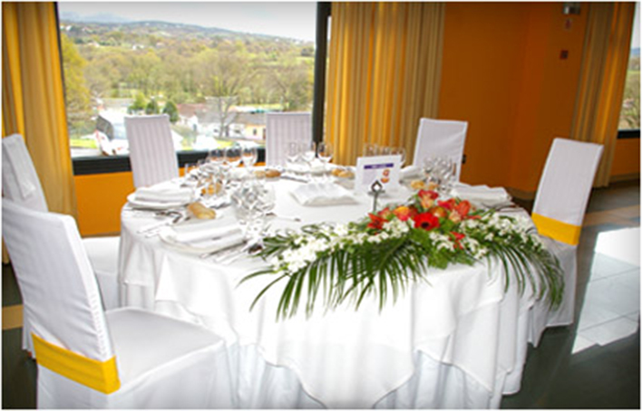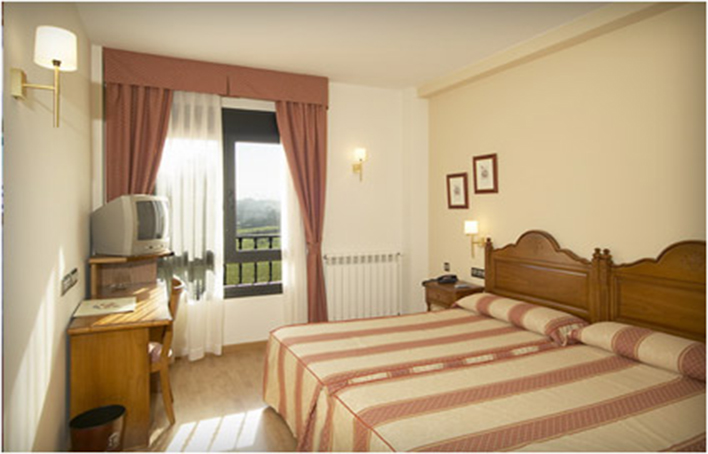 Dispone de 55 habitaciones completamente equipadas, con porche y jardines desde los que se podrá disfrutar de las inmejorables vistas de la cordillera central asturiana que abarca desde Picos de Europa al Este, Peñamea, el Puerto San Isidro y al Sur el macizo de Pajares. Con conexión Wi-Fi incluída, cuenta con 4 restaurantes preparados para todo tipo de eventos que sirven gran variedad de platos típicos de la gastronomía española y asturiana.