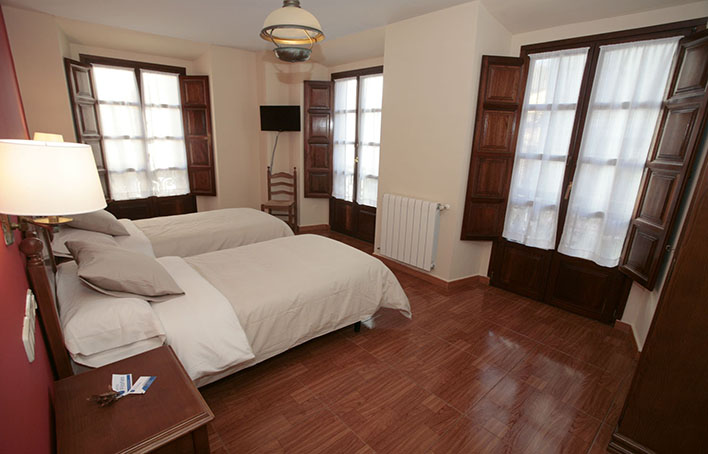 Dispone de 12 habitaciones en las que destacan los amplios ventanales con vistas a la Plaza Mayor, al Puente Viejo (acceso al barrio de "Triana") y de la calle "del Quesu", calle peatonal emblemática en la vida piloñesa y un referente en el tapeo gastronómico. Cuenta con un mesón típico asturiano en el que predominan las Jornadas Gastronómicas de la Caza y los platos locales. Se encuentra a un paso de Villaviciosa, Colunga, Nava (Comarca de la Sidra), Arriondas, Cangas de Onís, Covadonga, Ribadesella, Llanes...
