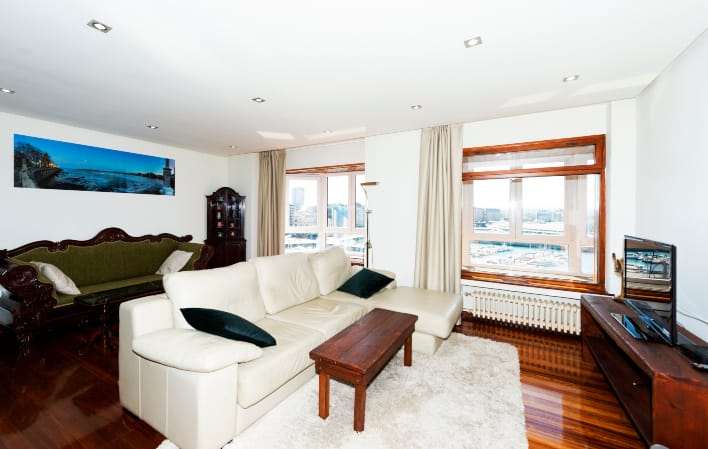 También en esta planta, la cocina totalmente equipada incluye un cuarto de lavado y una mesa comedor extensible, junto a una terraza con vistas al barrio de Cimavilla. La planta superior alberga dos habitaciones dobles, cada una con su propio baño completo y acceso directo a la amplia terraza amueblada con vistas al puerto deportivo.