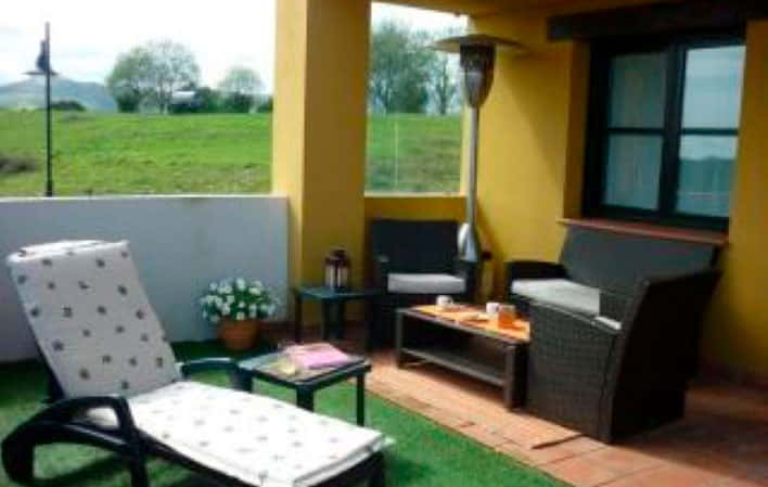 Destacando entre sus características, la vivienda cuenta con una espaciosa terraza de 42 metros cuadrados, con una zona cubierta (porche) y mobiliario completo para disfrutar de comidas al aire libre, así como una estufa de butano para mayor comodidad en las noches más frescas. En el área exterior, los huéspedes pueden relajarse en las hamacas y disfrutar de un auténtico escanciador de sidra, sumergiéndose así en la cultura local.