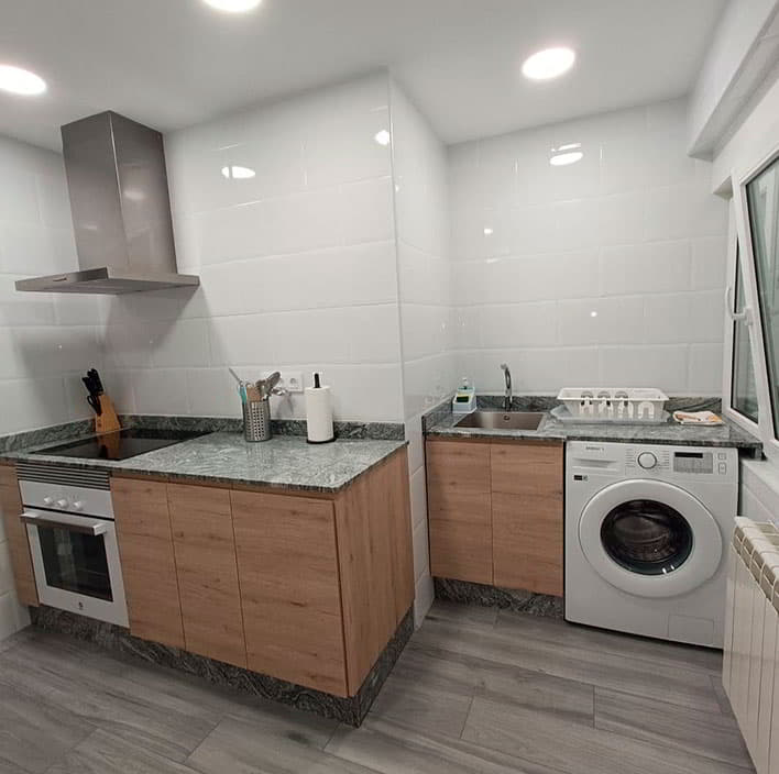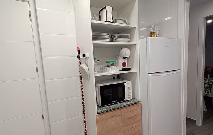 Cuenta con 3 dormitorios: uno de ellos con terraza, otro con un amplio armario empotrado y otro con dos camas unidas. Dispone de una cocina totalmente equipada (horno, vitrocerámica, nevera, lavadora, pequeño electrodoméstico, menaje de cocina…), comedor con TV de pantalla plana (sin sofá) y un baño con plato de ducha. Además, cuenta con calefacción y WiFi.