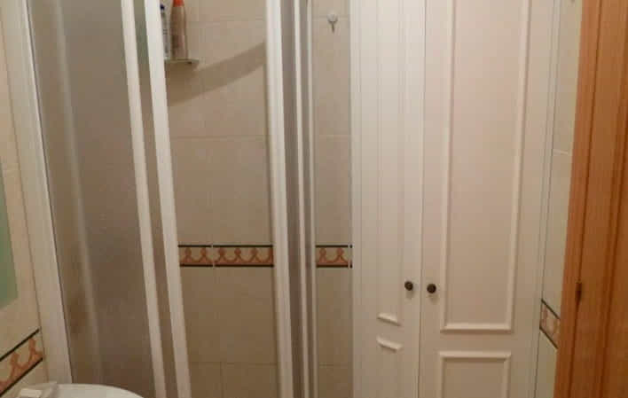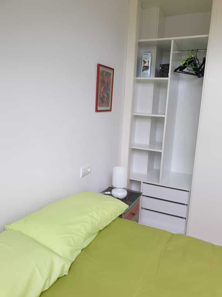 En su interior, encontrarás un espacio bien distribuido que incluye un dormitorio con una cama de 1,35 metros y armario empotrado, acompañado de un sinfonier y dos mesitas de noche. El baño es amplio y cuenta con un armario empotrado grande para almacenamiento.