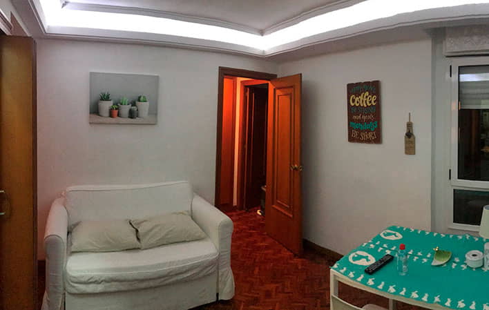 El salón cuenta con un práctico sofá-cama doble, ideal para alojar a huéspedes adicionales, y está equipado con muebles y electrodomésticos que garantizan su comodidad durante su estancia. Además, la vivienda se encuentra en un edificio de 6 plantas con ascensor, lo que proporciona un acceso cómodo y sin barreras.