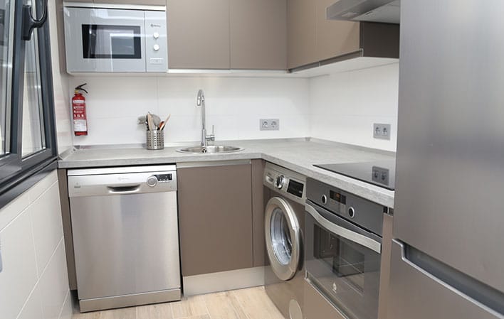 La cocina está completamente equipada con todos los electrodomésticos necesarios para preparar deliciosas comidas durante su estancia, incluyendo lavadora, lavavajillas, horno, microondas, placa de inducción con campana extractora, nevera y congelador. También se proporciona todo tipo de menaje y utensilios de limpieza para mayor comodidad.