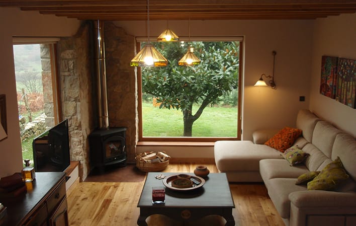 Acogedora vivienda vacacional de de dos plantas, con estructura de piedra y madera de castaño. Moderna y cuidadosamente decorada, combina tradición y confort.