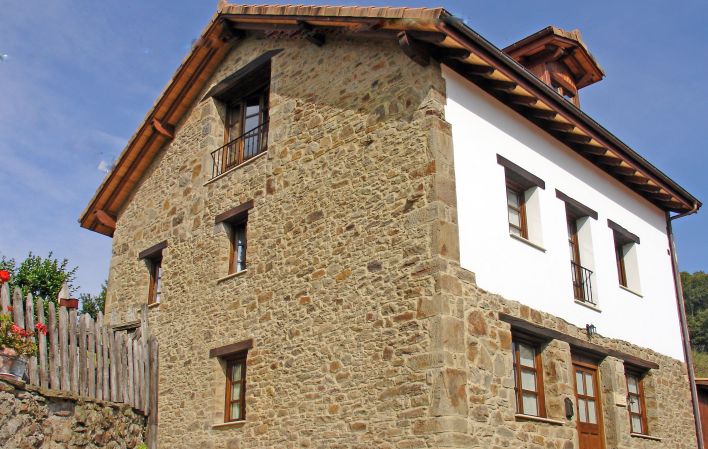 Casa de aldea de contratación individualizada (por habitaciones) de tres trisqueles, situada en la montaña central asturiana, en Quirós.