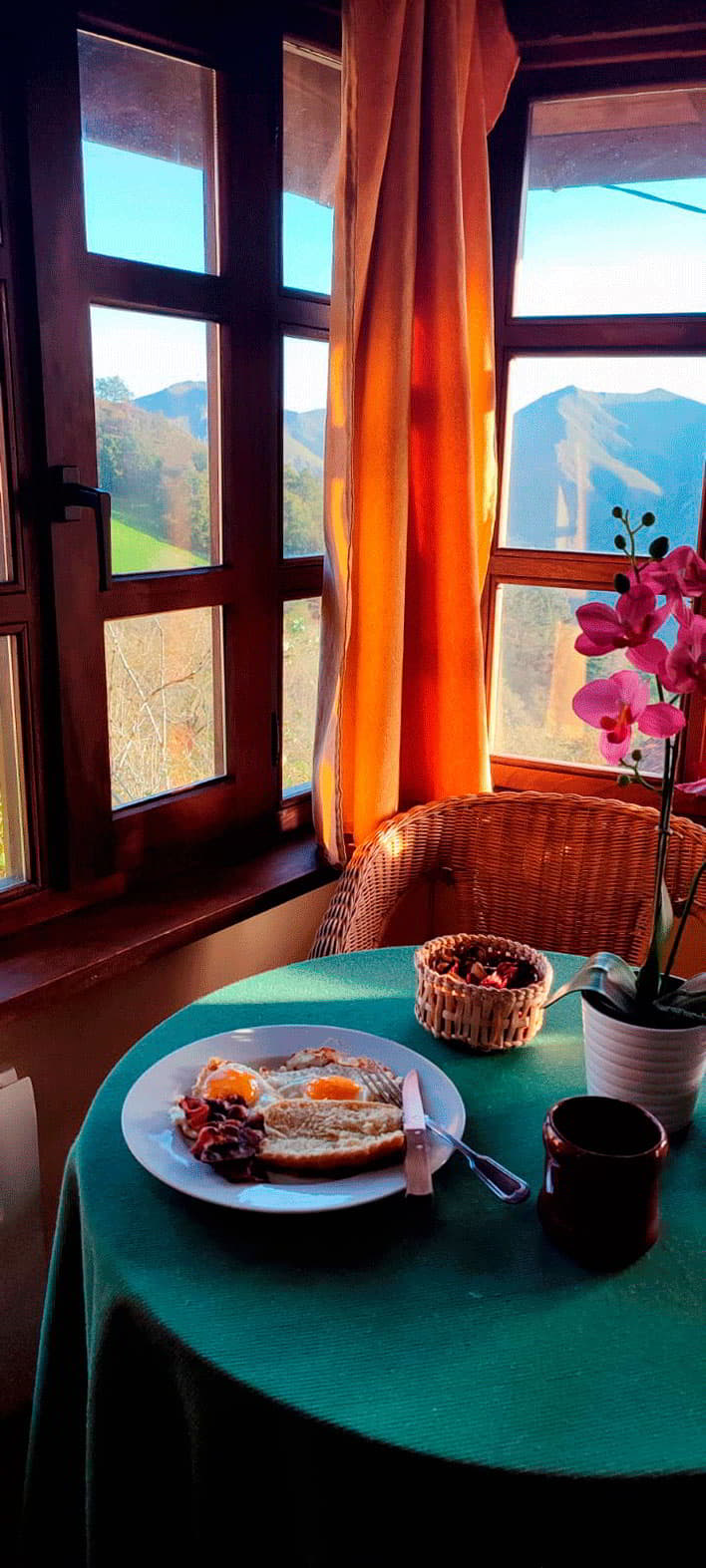 Preciosa y acogedora casa de aldea de dos plantas a 400 m de altitud. Amplio salón con sofá-cama doble, estufa de leña y grandes ventanales con unas vistas impresionantes. Tiene gran habitación en planta baja con cama queen size con cabecero de forja y estufa de leña.