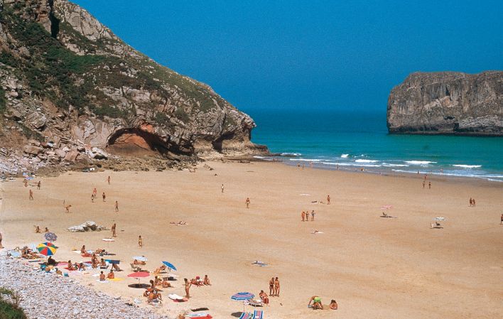 Su entorno resulta impresionante rodeada de majestuosos acantilados. Por sus corrientes a los alrededores del islote que la separa de Ballota, en Andrín es aconsejable tener precaución en las actividades acuáticas.