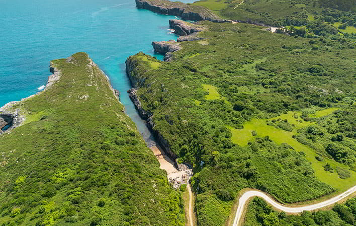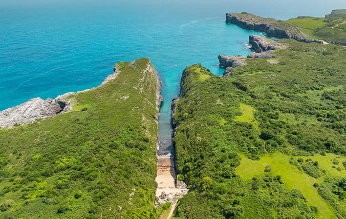 Pequeña playa de arena blanca, enclavada en un estrecho cañón rodeada de un paisaje natural de gran belleza.