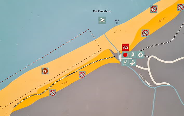 - Se permite el acceso de perros durante todo el año en la zona habilitada y debidamente señalizada para ellos, fuera de esta zona está prohibido.