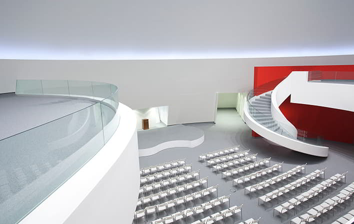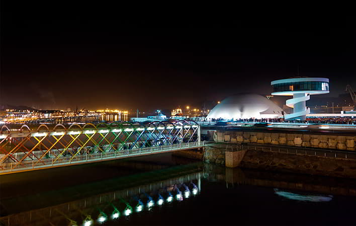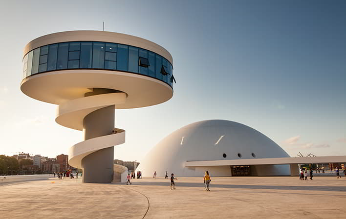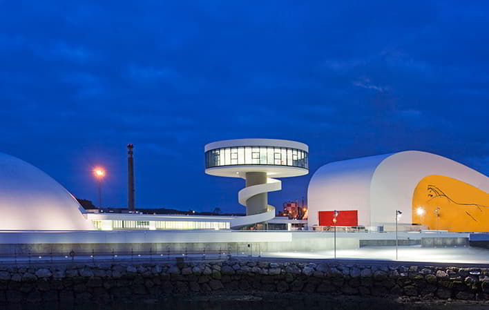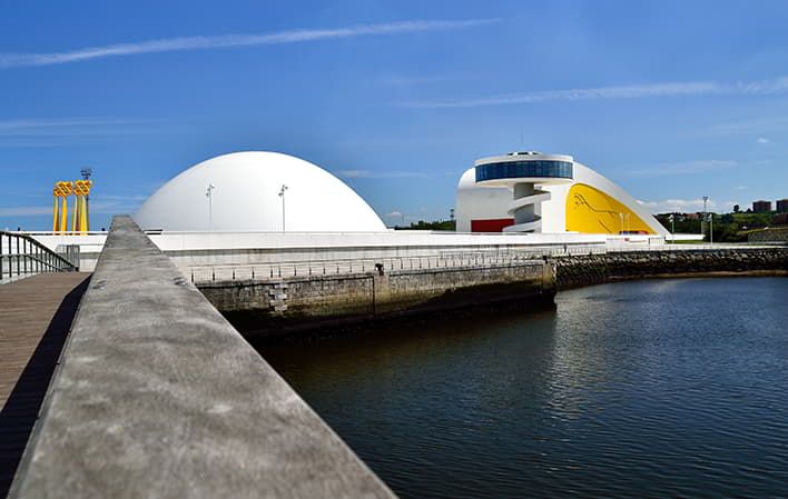 Este gran conjunto arquitectónico en el entorno de la ría de Avilés, es la única obra del arquitecto brasileño Oscar Niemeyer en España. La música, el cine, el teatro, la danza, las exposiciones, o la palabra son los protagonistas de una programación cultural multidisciplinar y con un denominador común: la excelencia. El centro está compuesto por los siguientes espacios: