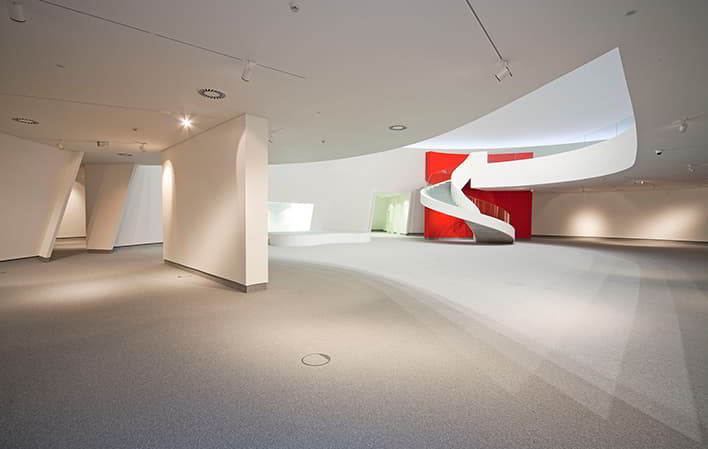 El vestíbulo, con más de 500 metros cuadrados, funciona como sala de exposiciones temporales de fotografía.