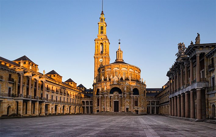 Laboral Ciudad de la Cultura declarada B.I.C (Bien de Interés Cultural) se alza sobre un pequeño promontorio del valle de Cabueñes. Teniendo a la vista la forma natural del terreno y la dirección de los vientos, el arquitecto optó por disponer el edificio de manera que su acceso se haga en sentido contrario al que parecería lógico, teniendo como punto de partida Gijón.