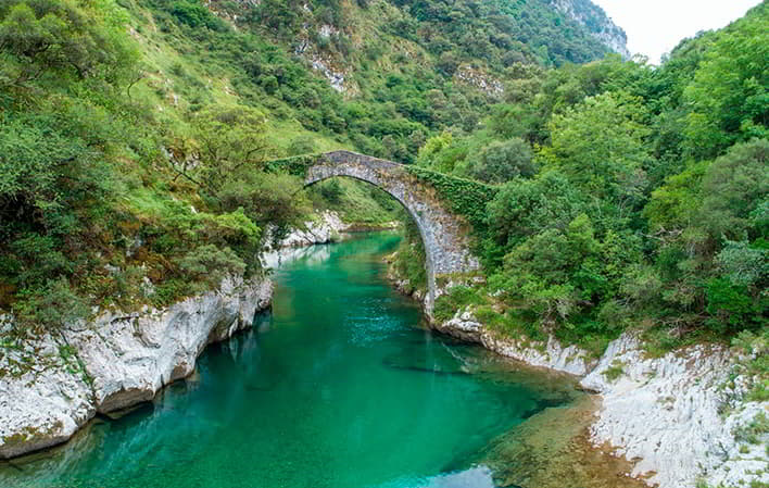 Como no podía ser de otra manera Peñamellera Alta tiene profunda huella indiana - especialmente en Alles, la capital del concejo, y también tiene honda huella prehistórica, teniendo en cuenta que en la cueva de Llonín se guardan a buen recaudo unas de las mejores pinturas de todo el arte rupestre europeo. Rozagás, Ruenes, etc. son otros nombres de pueblos y aldeas donde la vida rural asturiana se ha detenido en el tiempo. Quesos, miel, abejas y salmones, como los que se avistan en las cristalinas aguas del Cares al amanecer en cotos como el de Niserias…o a la altura del Puente La Vidre. Así es Peñamellera Alta.