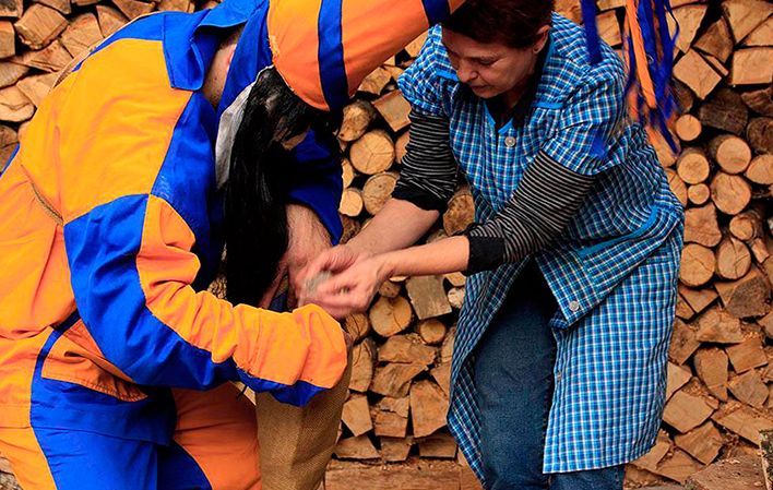 Escoltado por hombres a caballo, el Guirria es un personaje casi invulnerable para el año que comienza. El papel lo interpreta habitualmente un mozo del concejo - cuya identidad se mantiene en el anonimato -, que va dando besos a las mozas que encuentra en su camino y echa ceniza y da palos a quien trate de impedirlo.