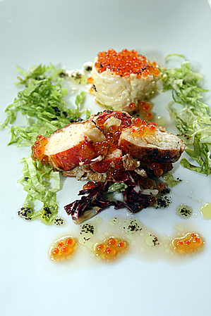 Ensalada de cangrejo con vinagreta de huevas de salmón