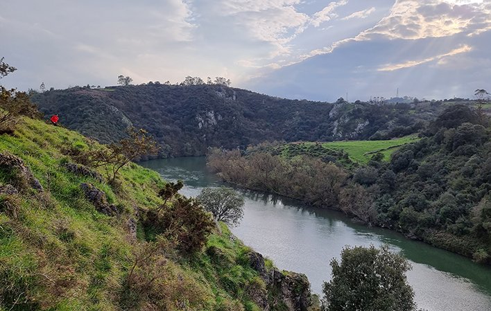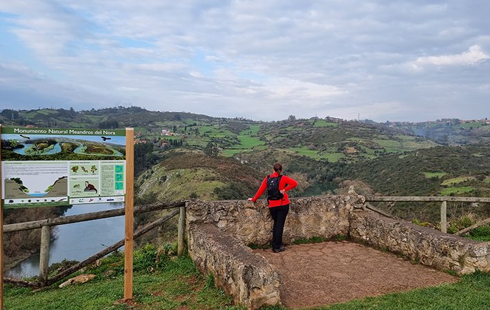 Los meandros encajados que el río Nora forma a su paso por el pueblo de San Pedru Nora y hasta su unión con el Nalón en el embalse de Priañes, constituyen una formación hidrogeológica de notable singularidad y rareza. Este Monumento Natural marca los límites entre los concejos de Oviedo y Las Regueras. Los Meandros del Nora se encuentran entre los concejos de Oviedo y Las Regueras, en el tramo final del río Nora hasta su desembocadura en el río Nalón.