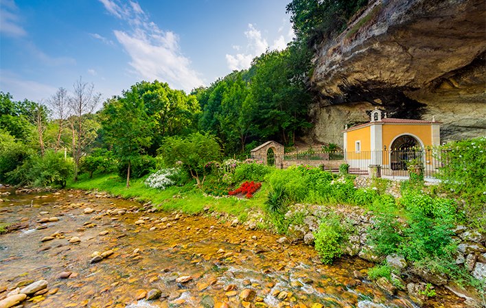 Un poco antes de entrar en Infiesto, punto final de esta ruta, recomendamos para y visitar el Santuario de La Virgen de La Cueva que es uno de los puntos clave del concejo de Piloña, situado junto a su área recreativa.