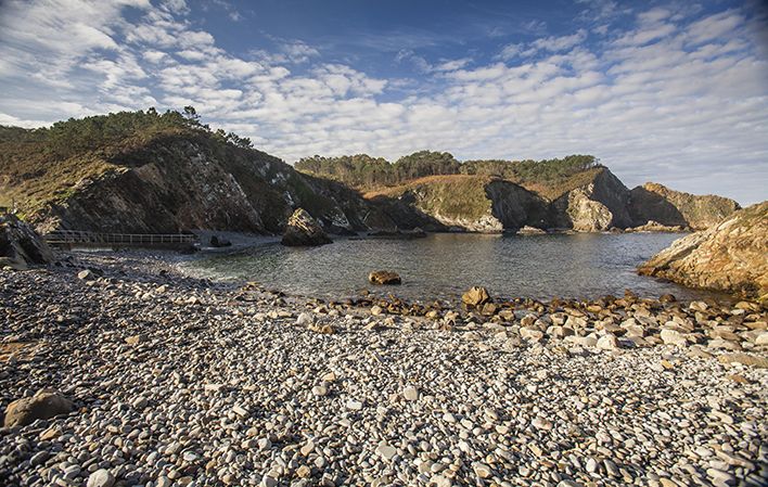 Una vez superadas las antiguas escuelas y la capilla, el camino lleva a la ensenada de Torbas y a la playa con el mismo nombre, en la que se puede descansar en alguno de los miradores que hay en sus inmediaciones.