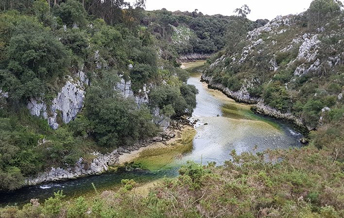 Tras dejar los acantilados la senda atraviesa densas plantaciones de eucalipto hasta llegar al mirador sobre el río Purón, desde el que se puede apreciar la belleza de su desembocadura, designado lugar de importancia comunitaria para formar parte de la red europea Natura 2000. Destaca su arbolado de ribera y la presencia de especies de alto interés en su curso, como el salmón o la nutria.