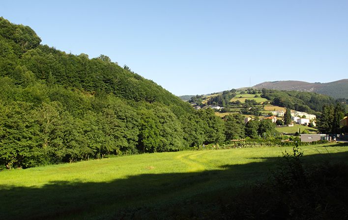 Las plantaciones de castaños jóvenes se alternan con los cabornios, castaños viejos que se podaban para aprovecharlos pero que siguieran vivos y produciendo, encontramos Xoxas, como se llaman en esta zona de Asturias a las construcciones para conservas las castañas, incluso un molino harinero restaurado y también un antiguo calero, construcción para producir cal con roca caliza.