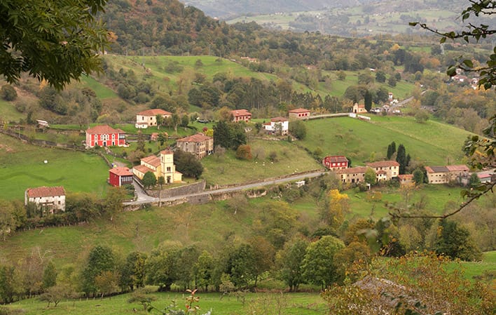 Continuamos camino bajando por la carretera AS-259 hasta llegar al pueblo de Vallobal, kilómetro 10, cuya iglesia conserva la devoción a San Lázaro, patrono de los leprosos, ya que entre los siglos XII y XVII hubo una comunidad de estos enfermos que eran atendidos en el hospital de la zona.