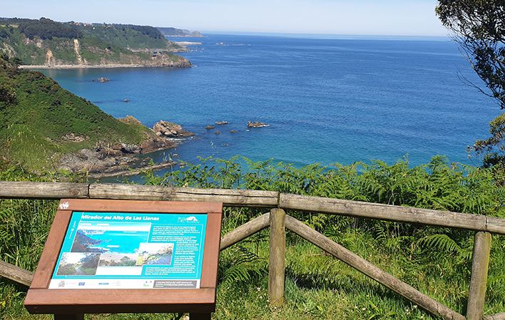 Desde este punto tenemos unas preciosas vistas de los acantilados, con la playa de los Quebrantos y la isla de Deva a la derecha y, a la izquierda, el Cabo Vidio. Unos 400 metros más adelante, el sendero se va rodeando de bosques de castaños y eucaliptos; está bien señalizado y a través de él vamos accediendo a los distintos miradores.
