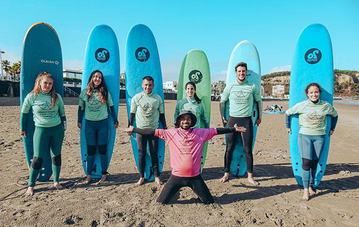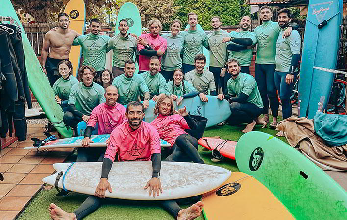 Ofrecemos paquetes Surfcamp a precios reducidos con alojamiento, desayuno, comida y 2 clases de surf al día en grupos reducidos y por niveles.