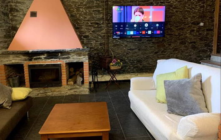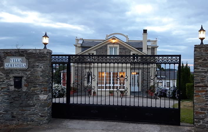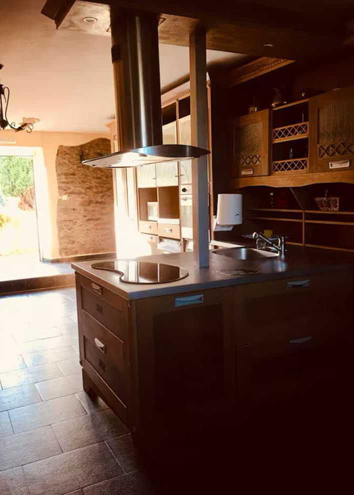 Tiene siete dormitorios con televisión y baño, dos cocinas completamente equipadas una de ellas es estilo loft con zona de juegos y televisión de plasma de 65". El exterior cuenta con un amplio jardín con aparcamiento, cenador, barbacoa y piscina (en temporada estival) además de bicicletas a disposición de los huéspedes.