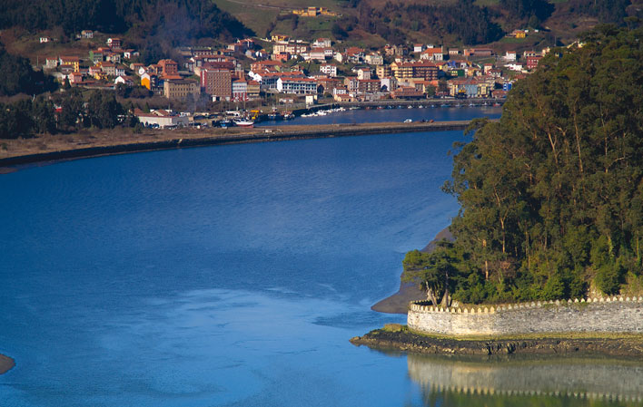 By the A-8 motorway and the N-634 and AS-12 roads.