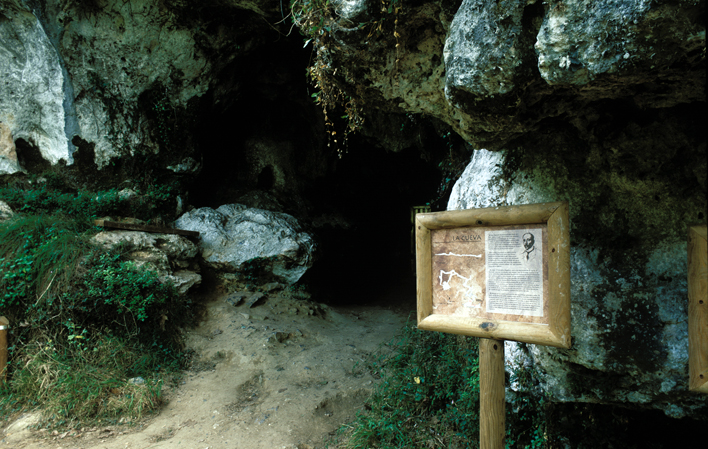 El Buxu Cave is located near the village of Cardes. It was discovered in 1916 and studied shortly afterwards by Count de la Vega del Sella and H. Obermaier, who focused mainly on its parietal art.Its stratigraphy contains important Solutrean levels with lithic and bone industry, accompanied by various examples of movable art, including a rare sculpture of a bird carved on the tusk of a cave bear and a limestone plaque engraved with different motifs (animals, signs and anthropomorphs).