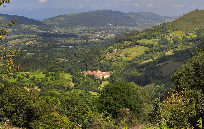 Frequent detour on the coastal road to approach Oviedo/Uviéu, to visit the Cathedral of San Salvador and the relics and treasures of the Holy Chamber. The change of direction is made in the council of Villaviciosa, on the way to Gijón/Xixón, in Casquita (at the fork of the chapel of San Blas), 3 kilometres after passing Villaviciosa. Two visits of great interest are in this area: the church of San Juan de Amandi (12th century), one of the most unique and representative Romanesque churches in Asturias. And, in the valley of Valdediós, the Cistercian monastery of Santa María, founded in 1200, next to the small and marvellous pre-Romanesque temple of San Salvador, known as the Conventín and consecrated in 893. Cross the river Valdediós and continue to Camoca.