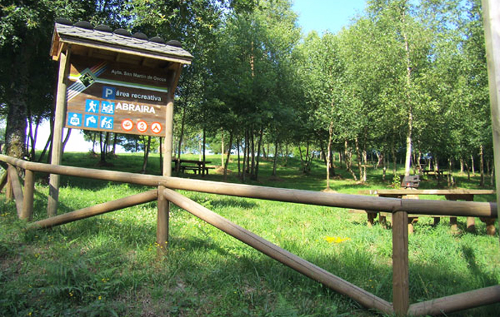 The area has all kinds of recreational equipment: barbecues, tables, benches, and there is also an area for parking vehicles.
