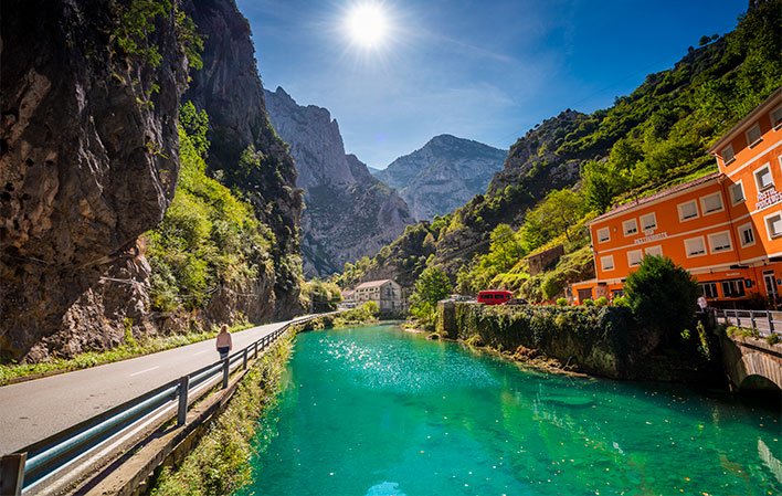 At Poncebos it meets the Duje on the right, both of them adopting a fork-shaped course that embraces the whole of the Massif Central. Together they head towards Arenas, Cabrales, where the Casaño joins on the left.