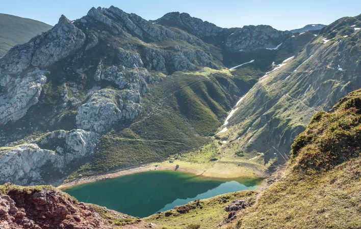 Of its landscape, the beauty of the lakes, located to the south of the council of Somiedo, at the top of the mountain ranges that separate Somiedo from León, stands out: the three small lakes of Saliencia; the Lago del Valle, with its characteristic islet, and which is the largest lake in Asturias, with an average radius of 280 metres and an average depth of 10 metres, although in some areas it reaches 50 metres; and the hidden Lagunas de El Páramo, between the valleys of the rivers Somiedo and Pigüeña.