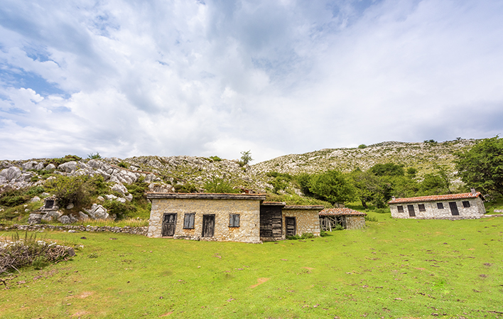 Espineres is a green hollow, surrounded by the grey limestone rock with which its huts are built and in which the hawthorn or espinera, which gives its name to the place, stands out above all. To get here, along a wide track, is a walk of just over 4 kilometres of continuous ascent that offers views of the councils of Colunga, Villaviciosa and Gijón and also of the Sierra del Aramo, Oviedo, Siero... in an amalgam of sea and mountains.