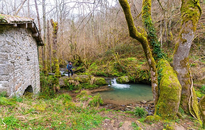 Almost without leaving the forest, we walk next to the river at almost all times, enjoying the restoration of some of these mills among alders, maples and old chestnut trees in the areas furthest from the water. It is not difficult, if we walk in silence, to spot the occasional roe deer in the area.