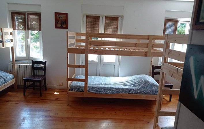 El albergue está ubicado en una casona asturiana con muchas ventanas, buena ventilación y luz natural